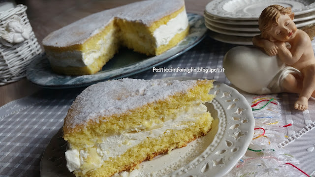 Prendete lo stampo rotondo da 20 cm e foderatelo con pellicola trasparente o carta forno. Tagliate la base della torta in due ed una mettetela come base, in fondo allo stampo. Farcite con meta’ crema, prendete il disco di cioccolato bianco e mettetelo in mezzo, copritelo con il resto della farcia e chiudete con l’altra meta’ della torta. Mettete la torta in congelatore paradiso per una notte, la crema verra’ tipo gelato che rimarra’ molto morbido. Al momento del servizio non dovrete farla scongelare ma potrete mangiarla direttamente, dovrete solo coprire con abbondante zucchero a velo.