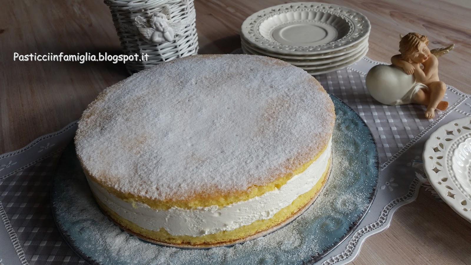 Prendete lo stampo rotondo da 20 cm e foderatelo con pellicola trasparente o carta forno. Tagliate la base della torta in due ed una mettetela come base, in fondo allo stampo. Farcite con meta’ crema, prendete il disco di cioccolato bianco e mettetelo in mezzo, copritelo con il resto della farcia e chiudete con l’altra meta’ della torta. Mettete la torta in congelatore paradiso per una notte, la crema verra’ tipo gelato che rimarra’ molto morbido. Al momento del servizio non dovrete farla scongelare ma potrete mangiarla direttamente, dovrete solo coprire con abbondante zucchero a velo.