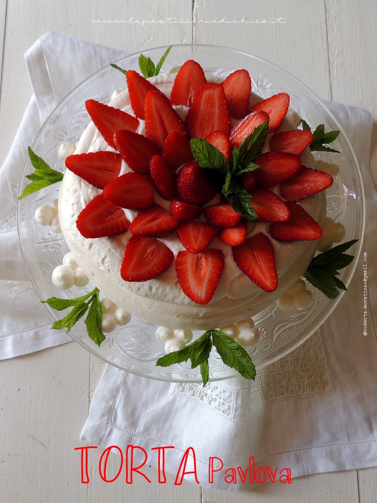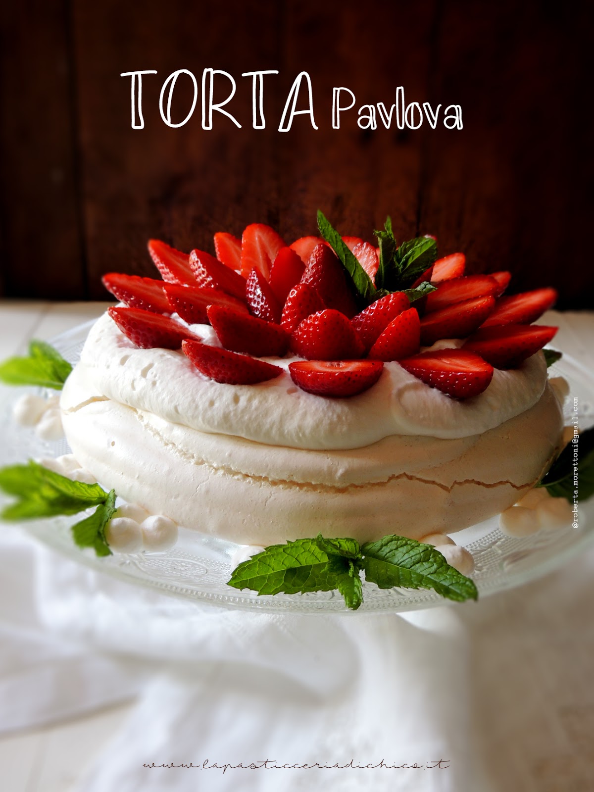 Per la festa della mamma di quest’anno, stavo cercando un dolce semplice ma elegante da proporre ai miei lettori, dopo aver pensato a lungo la lampadina si è accesa, la Torta Pavlova con le fragole è il dolce che fa’ al caso mio. La Torta Pavlova, deve il suo nome alla famosa ballerina russa Anna Pavlovna Pavlova, che apprezzo il dolce, preparato appositamente per lei da un chef in Australia, durante una sua turnèe negli anni venti. La particolarità della Torta Pavlova originale, sta’ nella meringa, infatti la base della torta è realizzata con una meringa in cui viene aggiunto amido di mais, questo fa si che la meringa risulti croccante fuori ma morbida al suo interno. La meringa va poi ricoperta di panna o crema e guarnita con qualsiasi tipo di frutta fresca, io visto che l’ho preparata in occasione della festa della mamma, ho usato delle bellissime fragole, che in questo periodo sono nel pieno della maturazione.