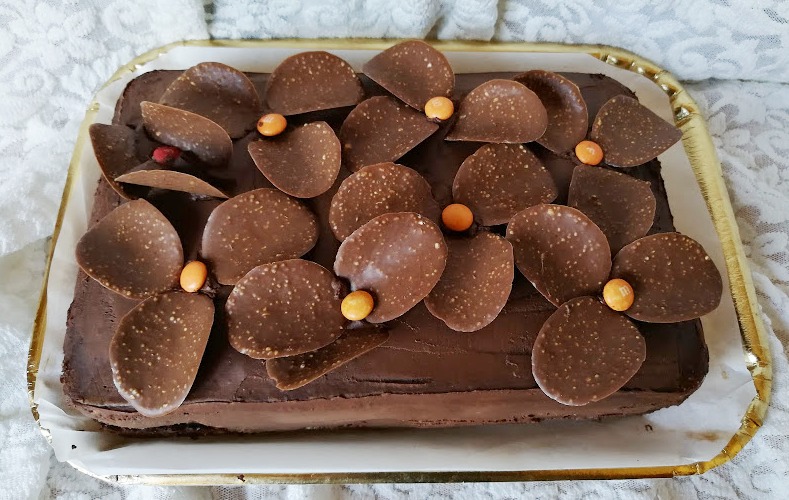 La decorazione, che ho deciso sul momento, è fatta con petali di cioccolato acquistati da IN’S sperando di poterli utilizzare in futuro..
