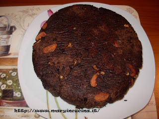 250 gr farina integrale di farro appena macinata, 50 gr zucchero integrale di canna, 2 banane, 130 gr acqua, 30 gr noci, 30 gr mandorle, 100 gr cioccolato fondente, 100 gr polvere di carrube, 1 bustina di cremortartaro.