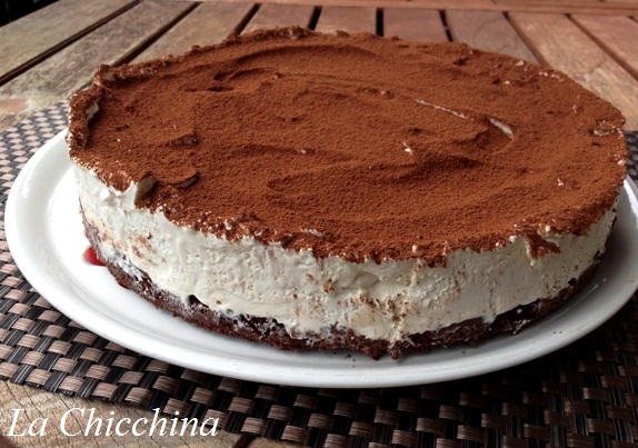 Eliminare la cerniera (bordo), cospargere di cacao amaro… Et voilà, la torta qusi gelato è pronta.