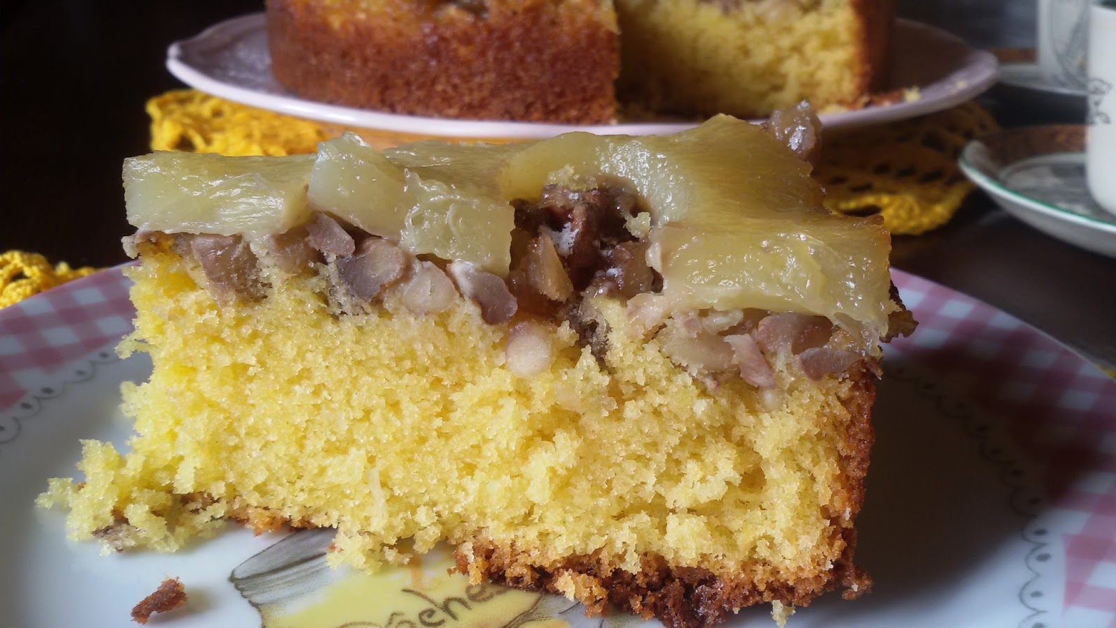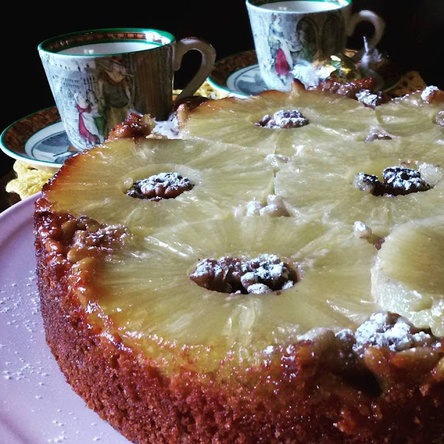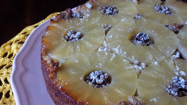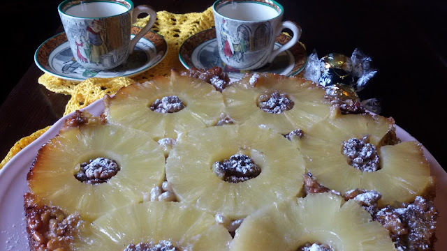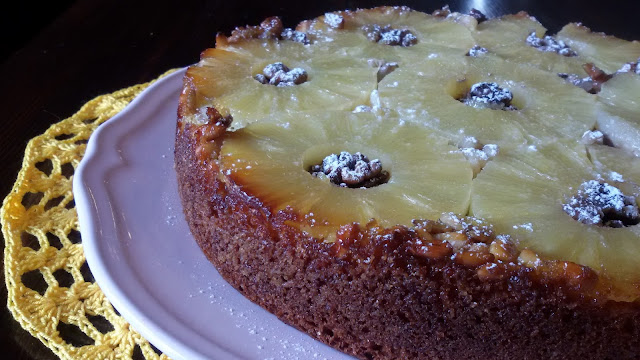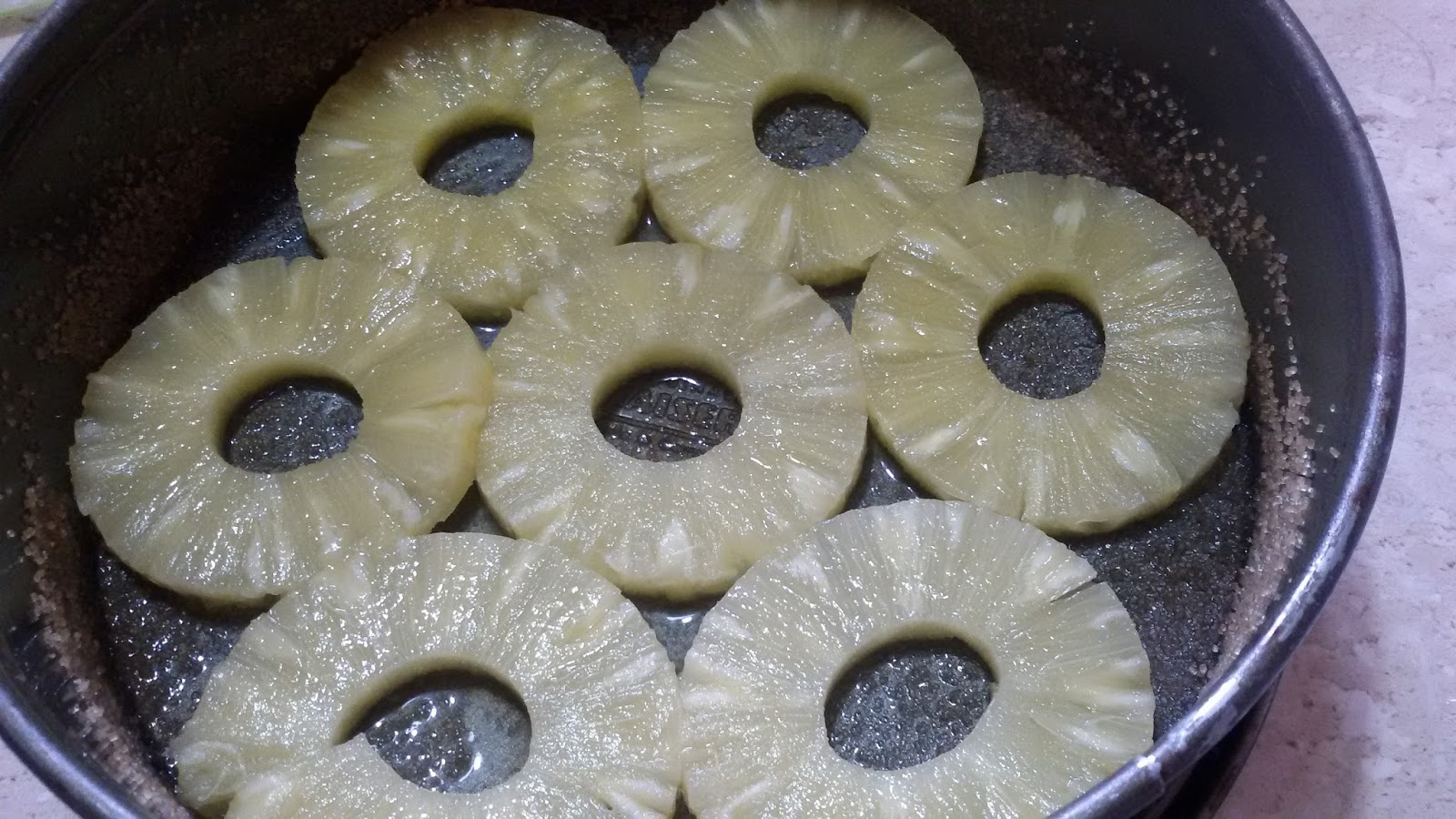 Però qualche ricetta da provare ce l’ho e ho cominciato da questa, non amo particolarmente i dolci con la frutta (cotta) ma questa TORTA ROVESCIATA ALL’ANANAS CON NOCI E PINOLI mi ispirava davvero tanto ed eccola qua.