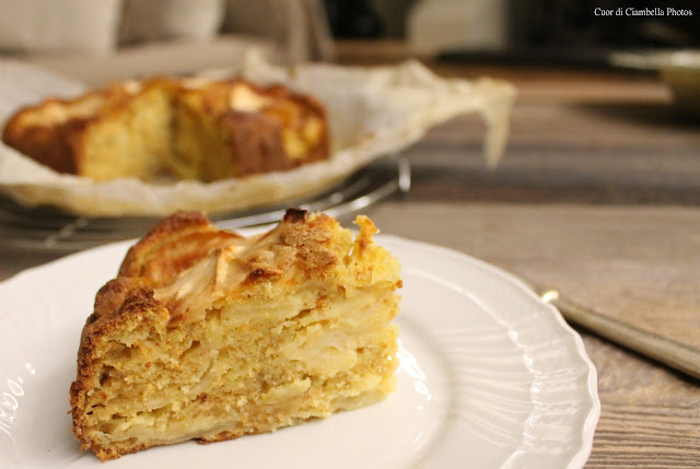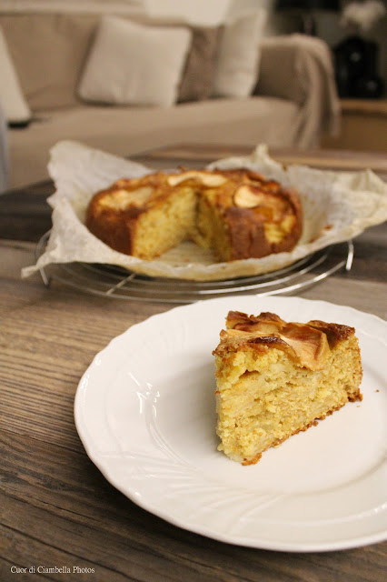 Avete presente quelle torte che sono più mela che impasto?? Ecco… questa è una di quelle! Cremosa e profumata è perfetta per la colazione, ma anche come dessert accompagnata da panna fresca o gelato. Se prima di mangiarla la scaldate leggermente si trasformerà ancor di più in una vera loveria!! I dolci con le mele sono quelli che mi danno più conforto di tutti. Mi fanno sentire super coccolata, non so se capita anche a voi! La caratteristica di questa torta (come del resto molti dei miei dolci) è che non ha farina ne zuccheri raffinati ed il burro è stato sostituito dalla mia amata ricotta! E’ una torta ricca, ma decisamente sana!
