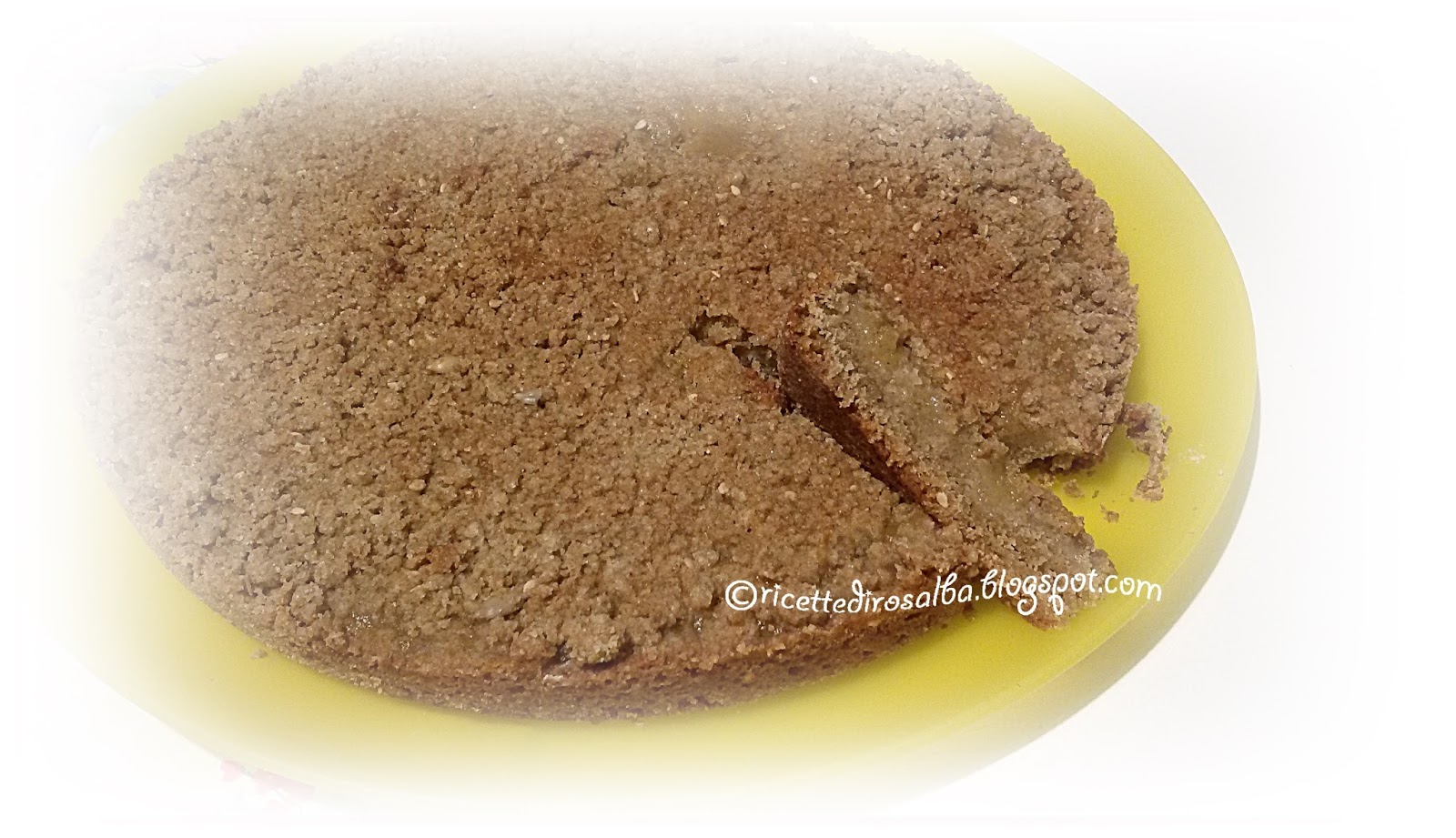 Ciao amici! :-) Oggi vi propongo questa torta veloce e semplice. Lo so , non è molto invitante perché scura..ma è la farina e lo zucchero di canna..Però, vi assicuro che è ottima. Una torta che potete fare all’ultimo momento. E’ davvero buona e golosa. Gli ingredienti poi sono farina speciale per pane nero, farina bianca, uova zucchero di canna e olio di riso. Il tutto concluso con una buona marmellata di mele fatta da me.