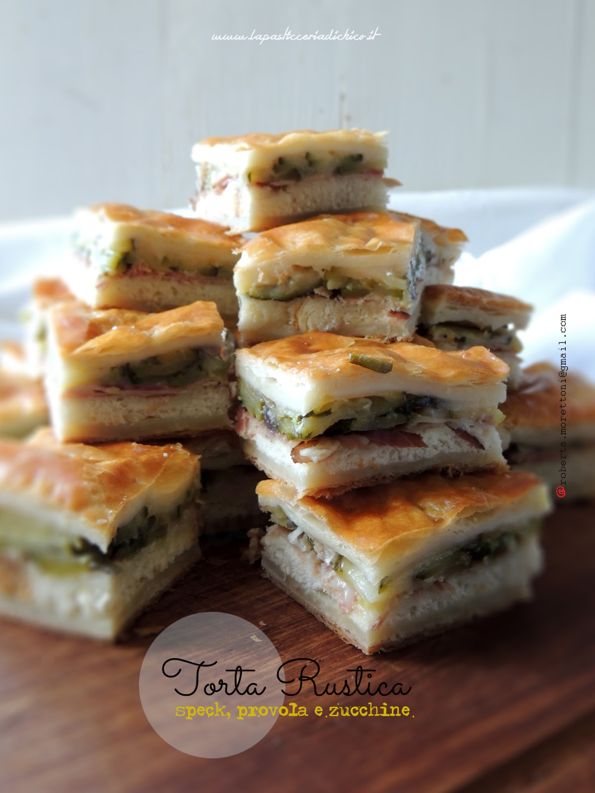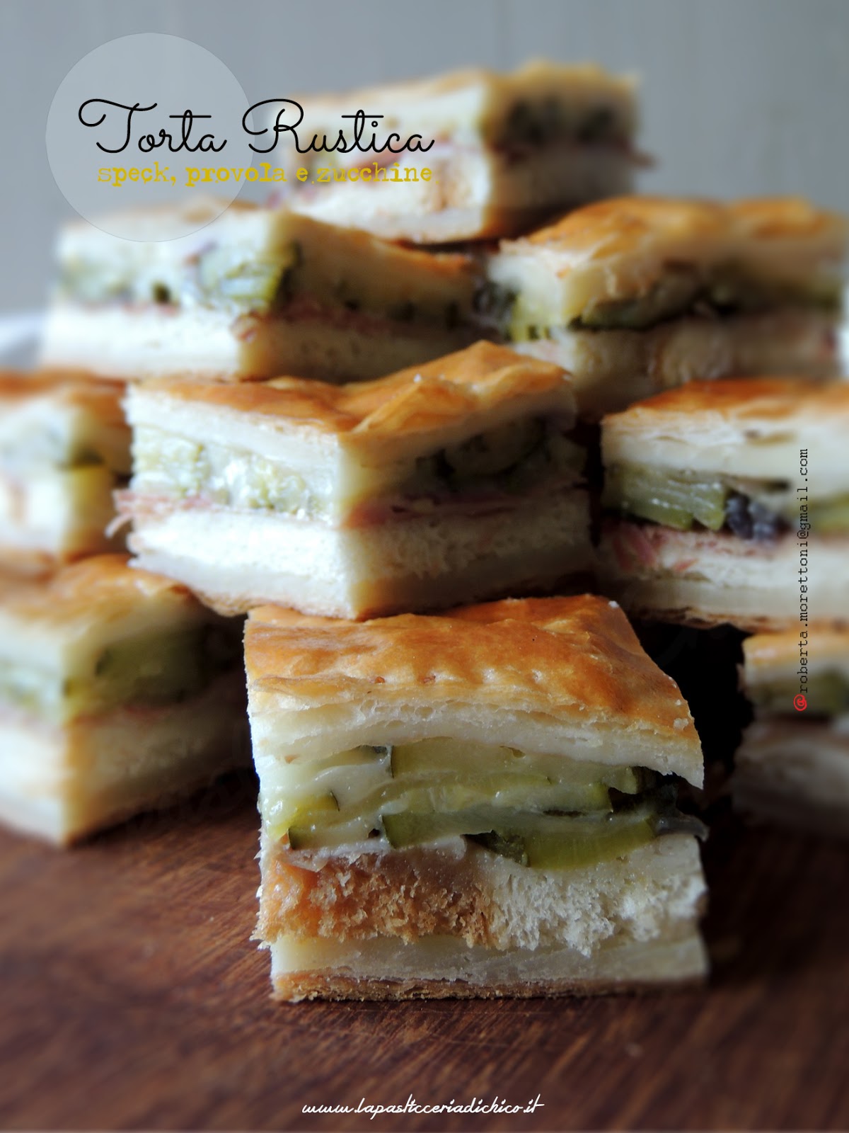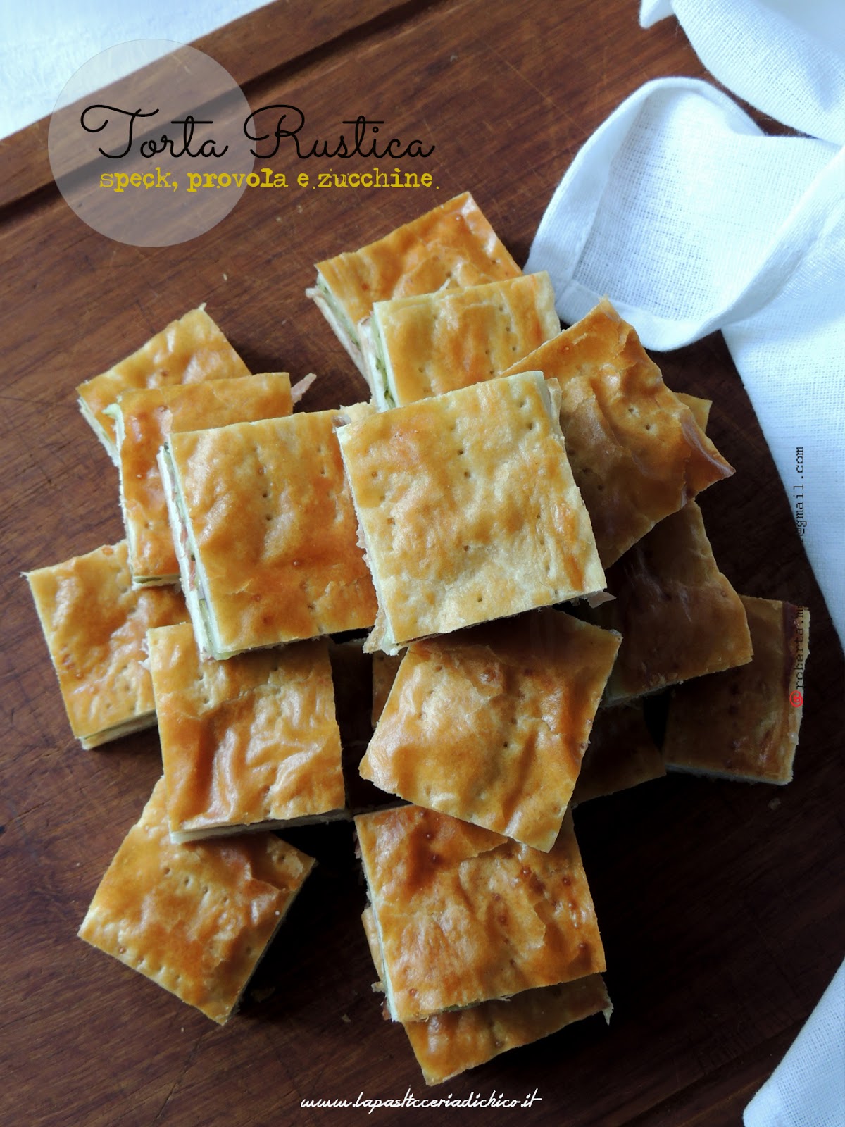 Il mio consiglio: Se dovete servire la torta rustica in un buffet, preparatela il giorno prima e fatela raffreddare bene e solamente dopo tagliatela a quadratini. Per apprezzarla al meglio passatela in forno caldo prima di servirla.