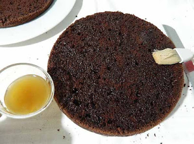 Dividere la torta in due, bagnare la prima parte con il Liquore al Miele