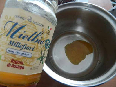 Preparare la copertura, mettere su fuoco dolce un pentolino con l’acqua e il Miele Millefiori,