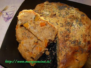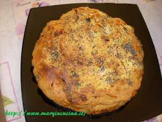 Cuocere pochi minuti la zucca a cubetti in padella con cipolline ed un filo d’olio. Impastare tutti gli ingredienti ed aggiungere la zucca, amalgamare bene e versare l’impasto in una tortiera con cartaforno. Infornare a 180° per 30 minuti. Ho accompagnato questa torta con piselli freschi, zucca e cipolle cotti in padella con olio ed un po’ d’acqua per una quindicina di minuti.