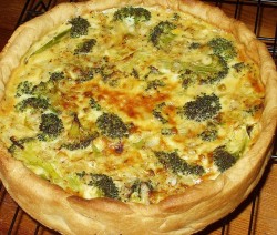 Tagliare a pezzettini i broccoli e distribuiteli sul fondo della tortiera. Bagnateli con il composto preparato e mettere la torta salata in forno preriscaldato a 180° per 45 minuti. Lasciare intiepidire e servire.