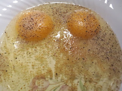 In una scodellina sbattere le uova con il pepe e un pizzico di sale..