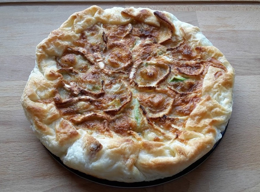 Rimboccare l’eccedenza di pasta sfioglia come appare in foto..