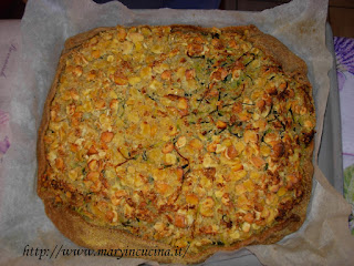 Impastare la sfoglia e tenerla da parte. Cuocere le cicerchie per 30 minuti. Tagliare le zucchine sottilmente, io le ho tagliate a spaghetti con l’apposito attrezzo (affettaverdure). Scaldare in padella un filo d’olio e versarvi le zucchine spaghettate, mescolarle e lasciarle scottare pochi minuti. Aggiungere la quinoa ed un po’ d’acqua. Proseguire la cottura per 10 minuti. Eliminare l’acqua di cottura delle cicerchie ed eventualmente anche l’acqua in eccesso delle zucchine. Aggiungere il sale e mescolare bene. Stendere la sfoglia su una teglia con cartaforno, versarvi la farcia, richiudere i bordi sull’impasto e cuocere a 180° per 25 – 30 minuti.