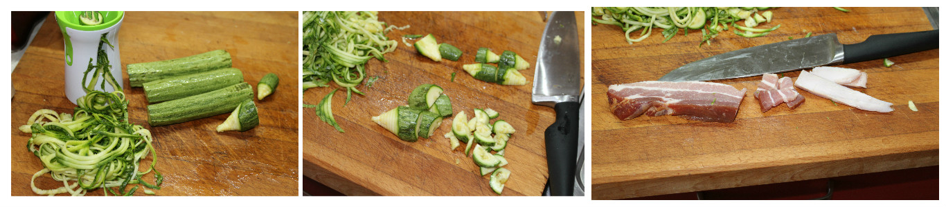 Per preparare questa meraviglia vi occorreranno, una teglia rotonda, una padella antiaderente, e lo spiralizzatore di verdure, ma se non l’avete grattugiate le zucchine con la lama a fori larghi.