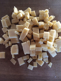 ho messo nella base i fagiolini, il formaggio e 150 gr di prosciutto cotto a cubetti