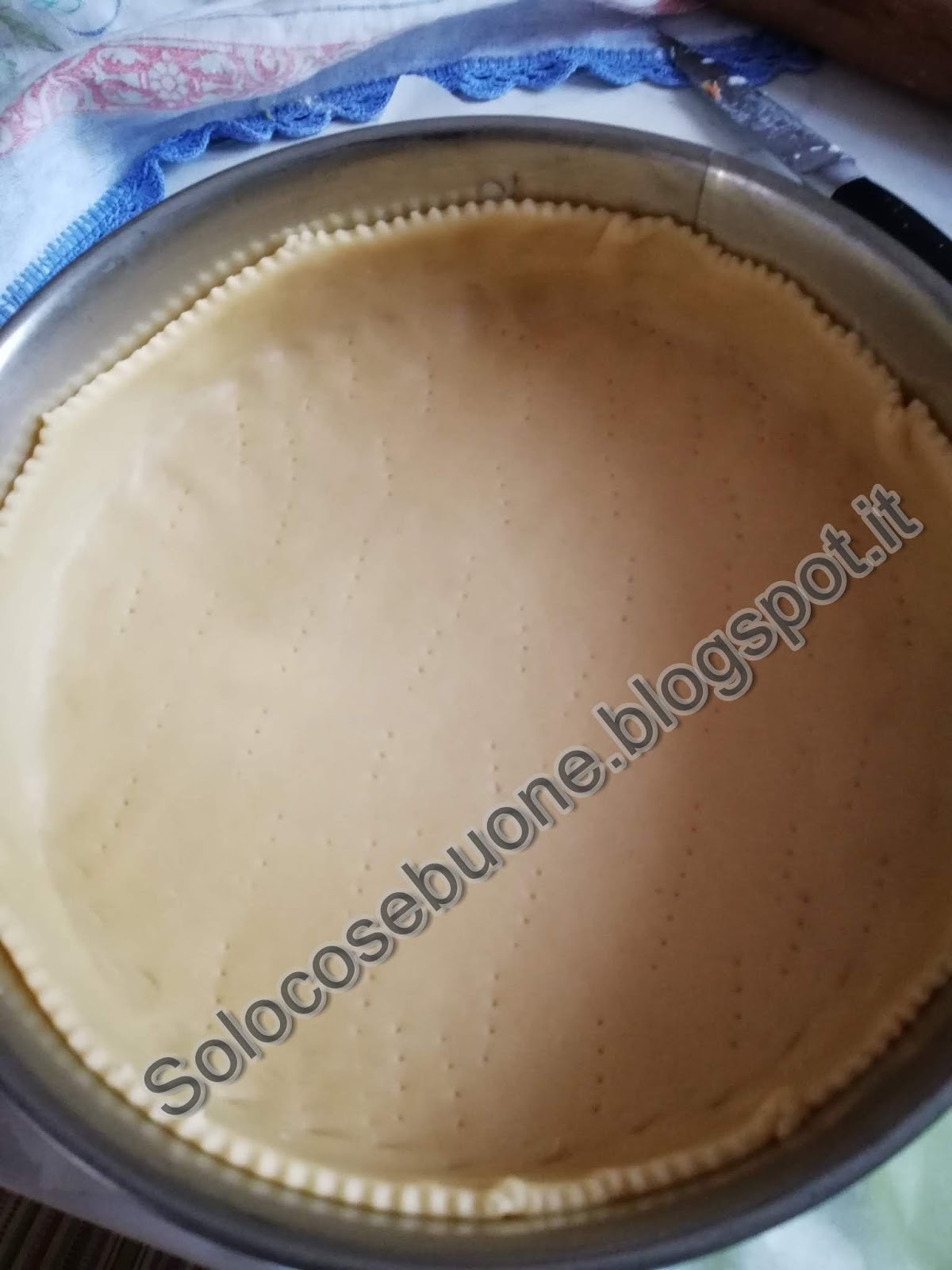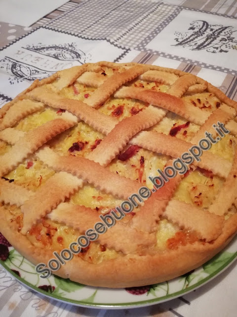 Ho versato il ripieno, livellato bene e ricoperto con strisce di pasta intrecciate a formare una griglia.