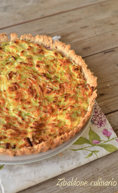Preparare la base: mettere la farina e un pizzico di sale in una ciotola aggiungere il burro freddo a tocchetti, e impastare sfregando la farina e il burro con le mani, aggiungere un paio di cucchiai di acqua fredda così da riuscire a formare un impasto. Avvolgere in pellicola e mettere in frigo per 1 ora.
