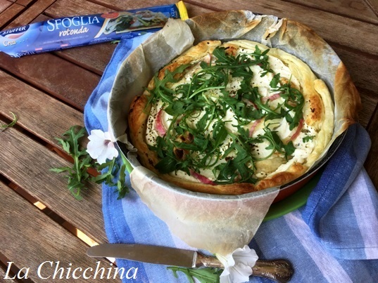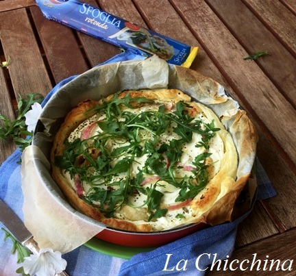 Quella che ne è uscita è una torta salata veramente degna di nota: golosa, ma anche freschissima, grazie all’aggiunta di rucola fresca (dopo la cottura); è piaciuta veramente a tutti e allora, secondo voi, non vi allungo la ricetta?! Giammai!!! Andiamo a cucinare!!!
