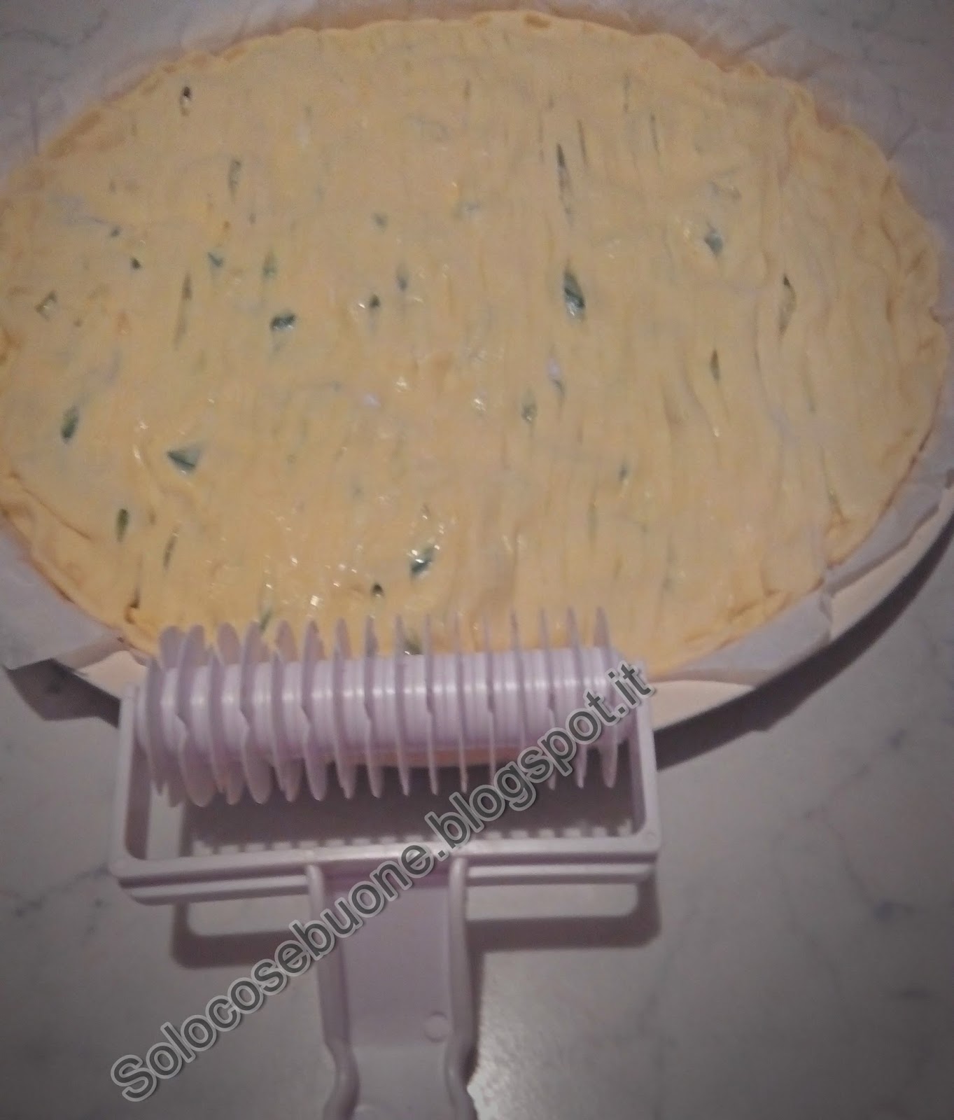 Ricopriamo con altro rotolo di pasta sfoglia su cui avremo fatto passare il rullo tagliapasta per ottenere una sorta di griglia.