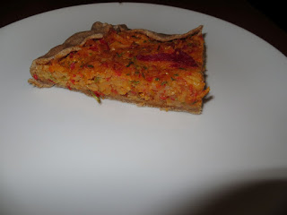 Impastare la sfoglia e far riposare mentre si prepara la farcia. Affettare a fiammifero patate e zucchine. Tagliare a striscioline il peperone. In padella con un filo d’olio saltare le verdure per 5 minuti. Aggiungere una pastella ottenuta dalla farina di ceci ed un po’ d’acqua. Aggiungere le spezie, mescolare e distribuire sulla sfoglia stesa con un matterello su un foglio di cartaforno in una teglia. Ripiegare i bordi della sfoglia sull’impasto ed infornare a 190° per 40 minuti.