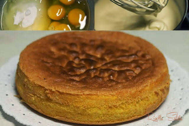 pan di spagna. Riunire in una ciotola le uova con lo zucchero. Sbattere a lungo con le fruste elettriche, anche per 20 minuti. Aggiungere la farina, il lievito e la vanillina poco alla volta e mescolare con le fruste senza far smontare le uova. Versare il composto ottenuto in uno stampo da 28 cm di diametro imburrato e infarinato e cuocere in forno a 180° per 35 minuti.