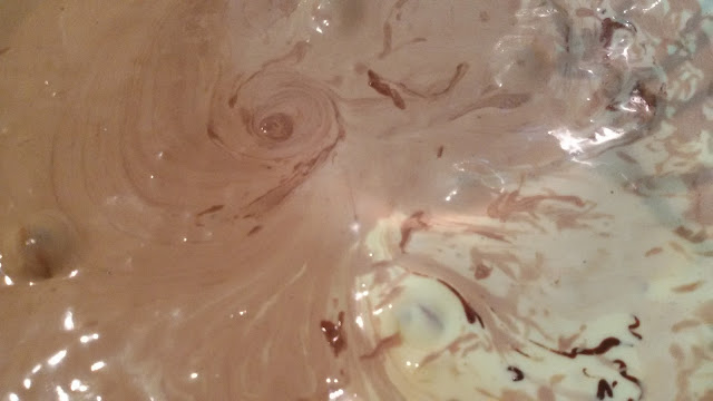 Mettete in un pentolino il cioccolato ed il burro, mescolatelo in continuazione tenendolo su fuoco bassissimo fino a che non diventerà bello liscio ed omogeneo, poi fatelo raffreddare un po’.