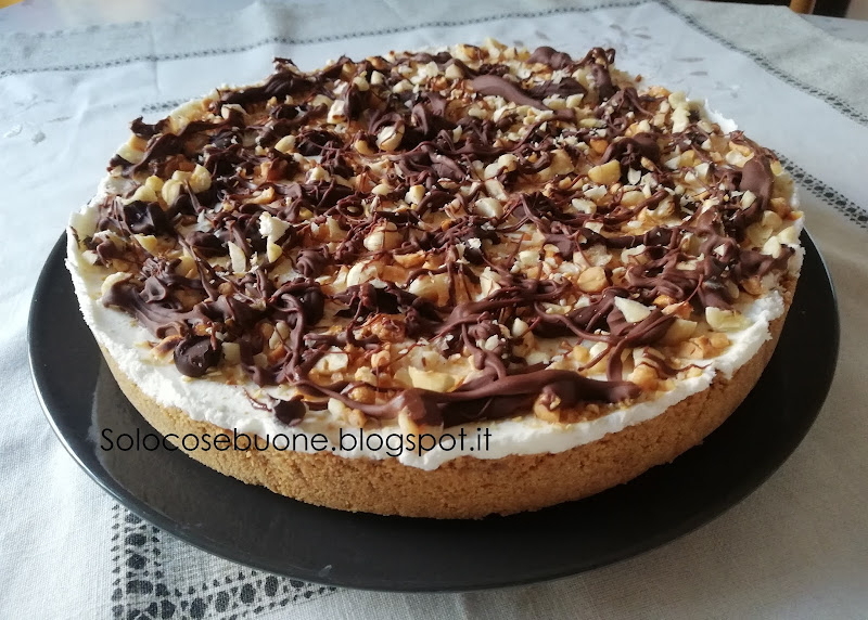 Compattiamo il composto di biscotti sul fondo della tortiera in modo da formare una base bella solida. Versiamoci la crema alla nutella e livelliamo. Formiamo quindi un secondo strato con la crema bianca e riponiamola in frigorifero per almeno 5 ore per farla rassodare bene .