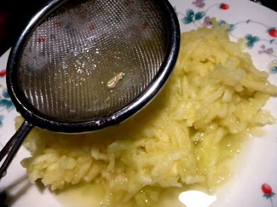 La metà delle mele grattugiate scolate dal liquido che si è formato nella scodella che le contiene…