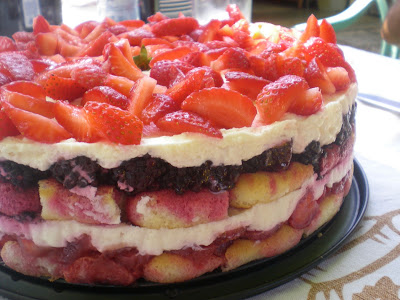 6 Ripetere con i savoiardi rimanenti, ancora le fragole e ancora la crema montata.