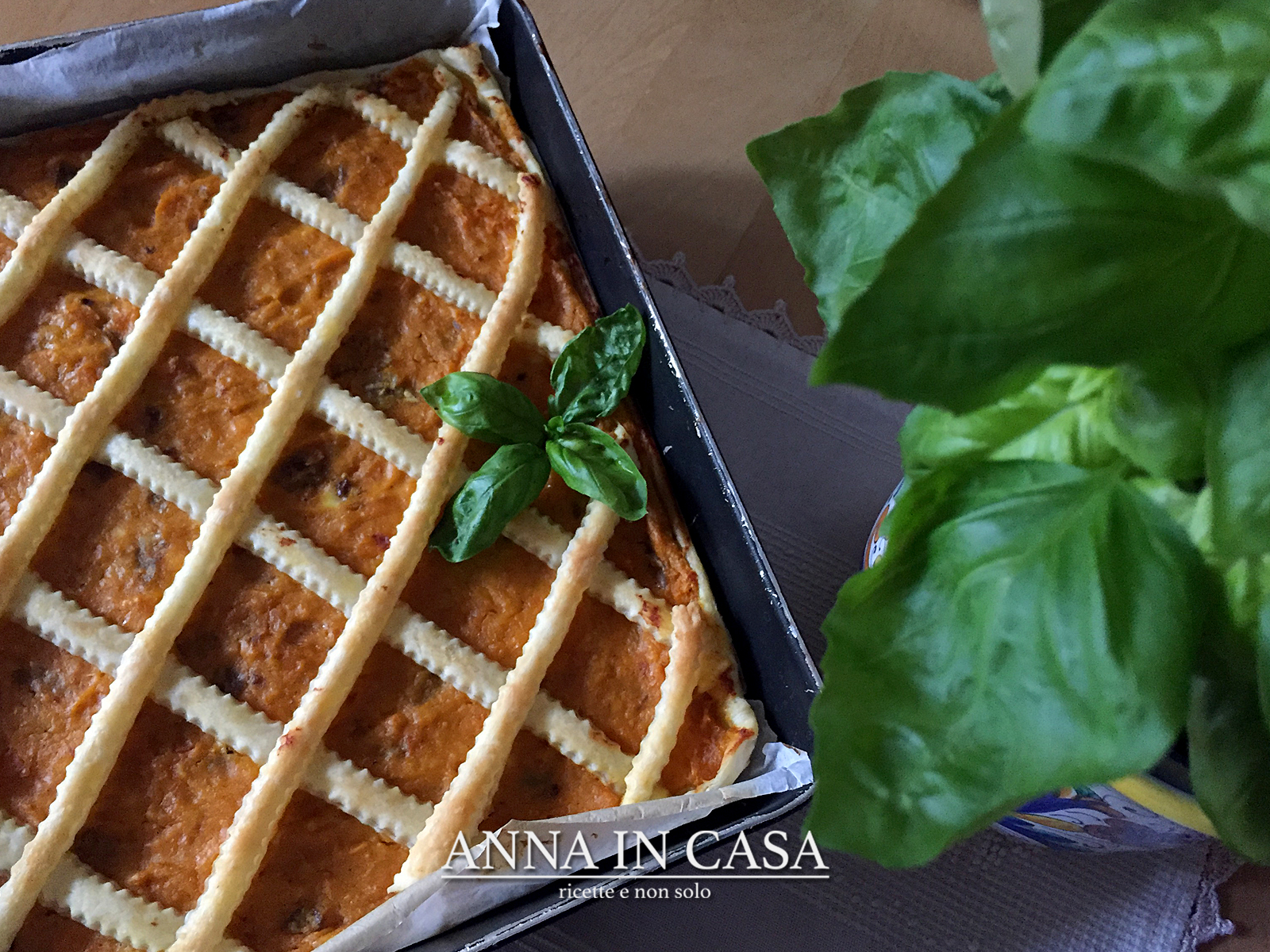 Dalla seconda parte di sfoglia, ricavare le strisce per formare il disegno di una crostata.