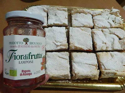 di soffice meringa che letteralmente si scioglie in bocca. Un dolce di sicuro successo, veloce da preparare, tagliato a quadretti è già pronto per essere divorato. Per la farcitura ho scelto la biologica Fiordifrutta Lamponi della Rigoni di Asiago che con il suo sapore dolce e leggermente acidulo ha trionfato nella Torta Slava.