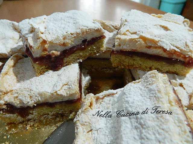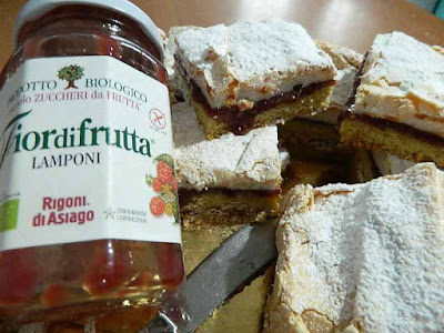 di soffice meringa che letteralmente si scioglie in bocca. Un dolce di sicuro successo, veloce da preparare, tagliato a quadretti è già pronto per essere divorato. Per la farcitura ho scelto la biologica Fiordifrutta Lamponi della Rigoni di Asiago che con il suo sapore dolce e leggermente acidulo ha trionfato nella Torta Slava.