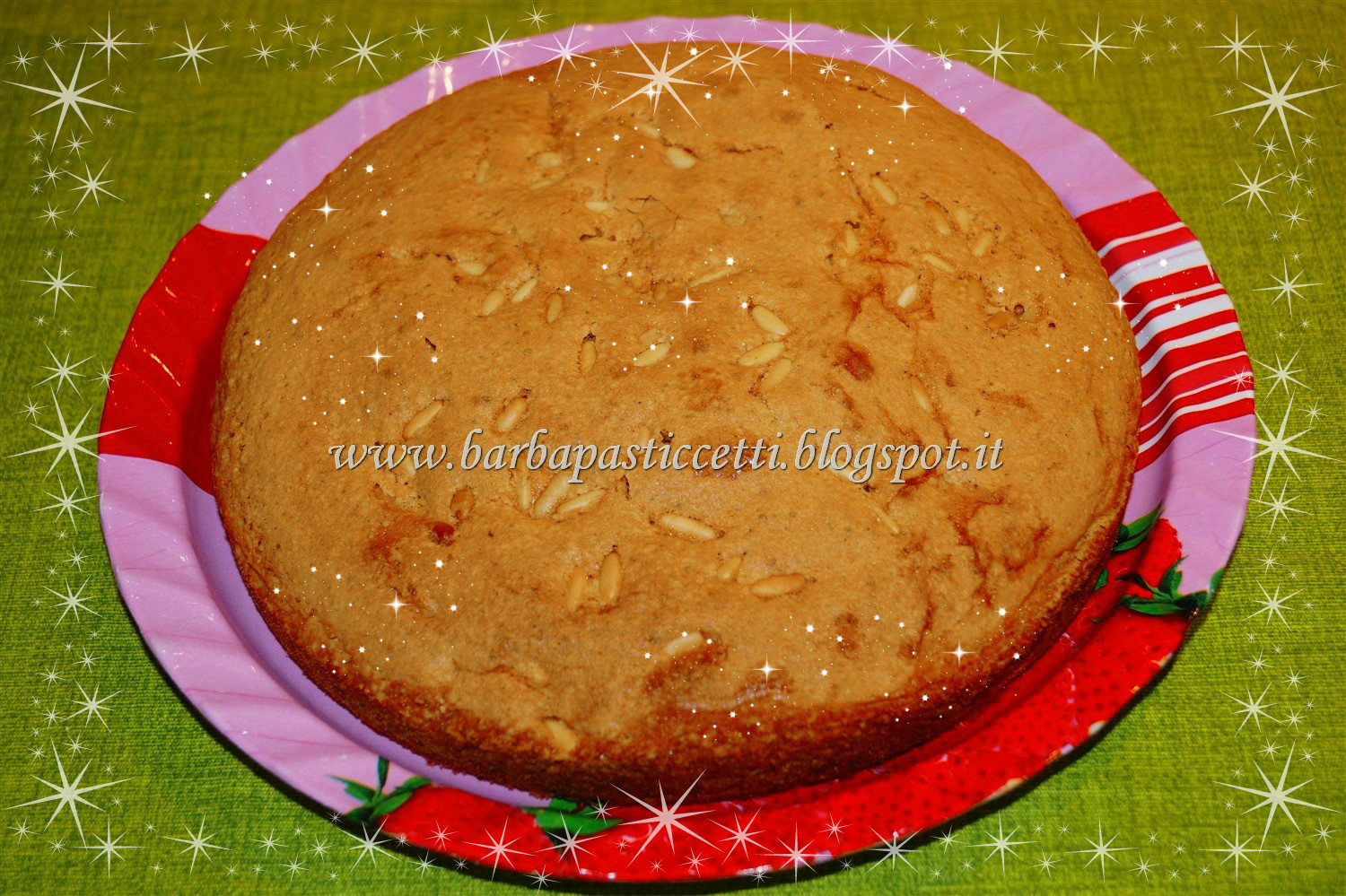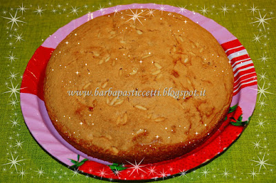 Ungere ed infarinare una teglia tonda e versarvi il composto, cospargere con pinoli e gocce di cioccolata ed infornare.