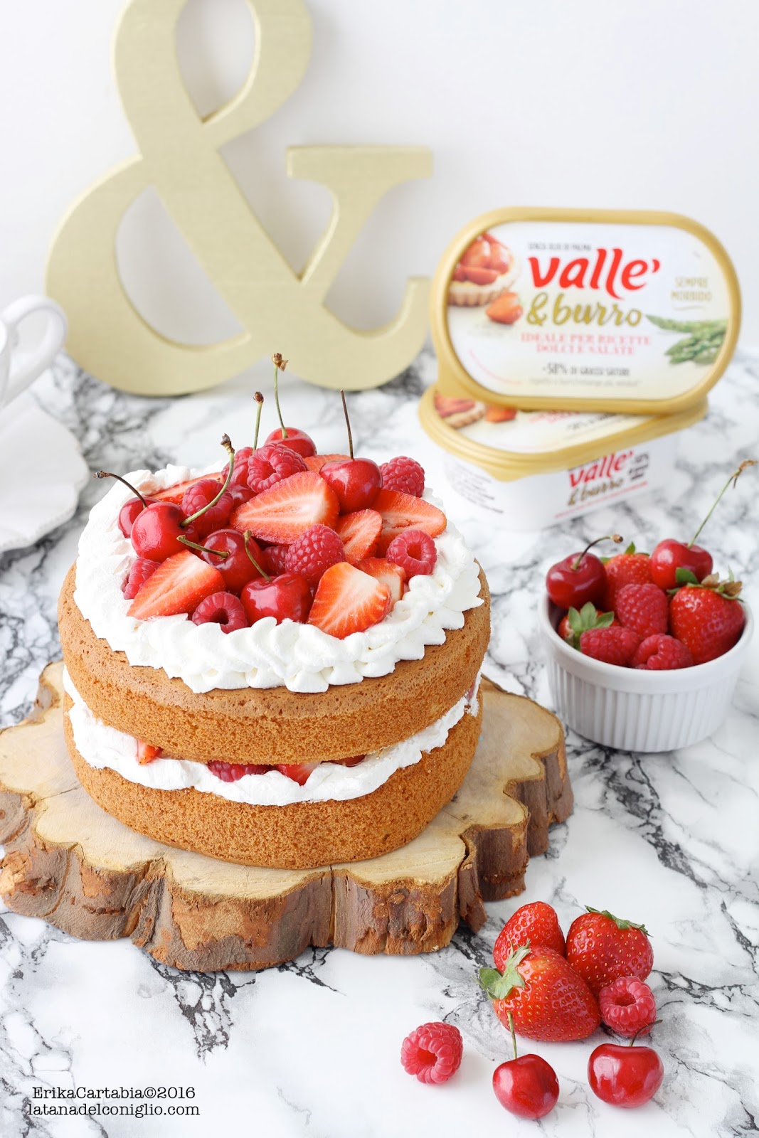 Finalmente la primavera ha deciso di regalarci tutta la sua bellezza e il suo tripudio di frutta e colori! Non so voi, ma io amo particolarmente le prime giornate di sole, quel piacevole tepore e il venticello fresco. Senza contare i profumi e i colori e l’infinita varietà di frutta, tutta da gustare! So anche, però, che prima o poi dovrò smettere di accendere il forno e iniziare a preparare dolci più freschi e leggeri, anche perchè la prova costume si avvicina inesorabile. Poi vedi una torta come questa e proprio non puoi dire di no! Soffice, delicata, con tantissima panna e frutti rossi: fragole, lamponi e ciliegie!