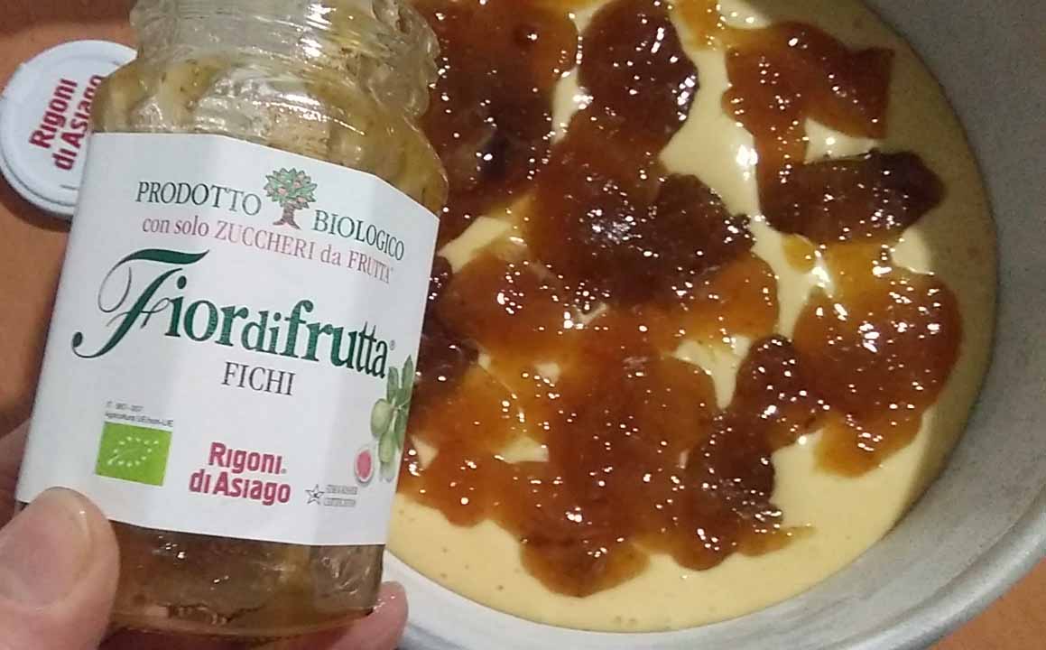 l’impasto aggiungendo l’Aroma Brandy della Flavourart, naturalmente se la preparate per bambini usate un altro aroma, e all’ultimo minuto la deliziosa Fiordifrutta Fichi della Rigoni di Asiago. Il profumo ha invaso non solo la cucina ma tutta la casa, vi avevo detto che era sera e, già avevo chiuso le imposte. La mattina è stata una festa, una torta soffice, profumata e golosissima, finita in un baleno.
