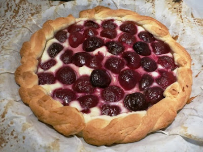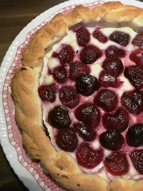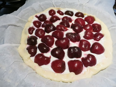 Disporre le ciliegie, lavate, asciugate e denocciolate come appare in foto..