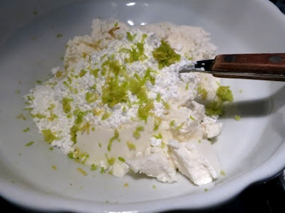 Far sgocciolare la ricotta e mescolarla alla buccia grattugiata di un limone biologico..