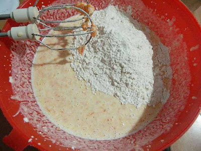 amalgamare gli ingredienti e continuare aggiungendo la farina setacciata,