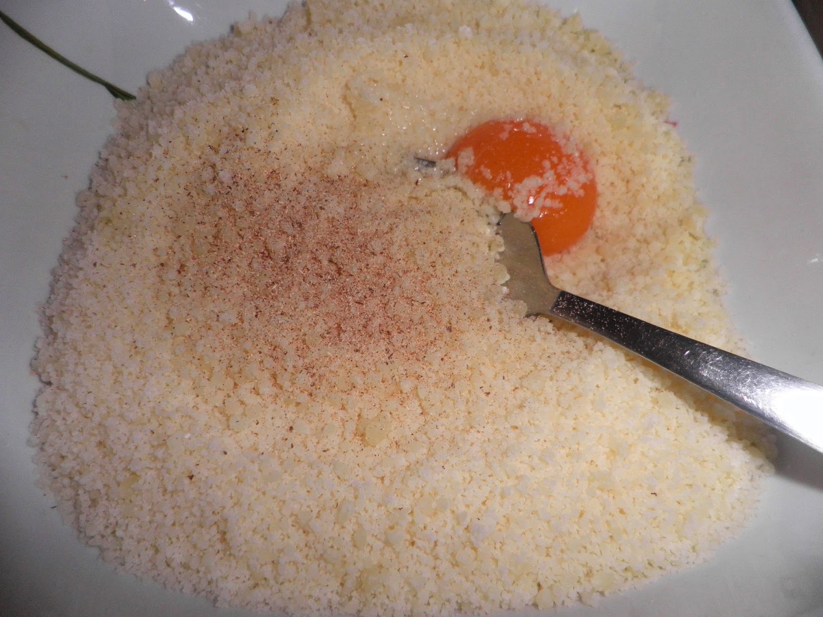 Per il ripieno 150 g di parmigiano grattugiato, 1 tuorlo, 1 cucchiaio di pangrattato.