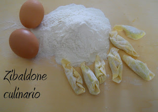 La pasta deve essere tirata con la sfogliatrice nell’ultimo foro (per renderla molto sottile) in strisce larghe circa 8 cm che poi verranno tagliate in obliquo a formare piccoli rombi.