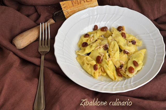 Quindi ho seguito scrupolosamente la ricetta (io di solito non metto il mascarpone) e li ho conditi come suggerisce lui, con uvetta e pinoli, mentre di solito sono al classico burro e salvia. MI sono piaciuti davvero tanto, anche perchè la spolverata sopra di formaggio grattugiato con questo condimento ci sta benissimo, compensa l’uvetta dolce.