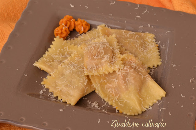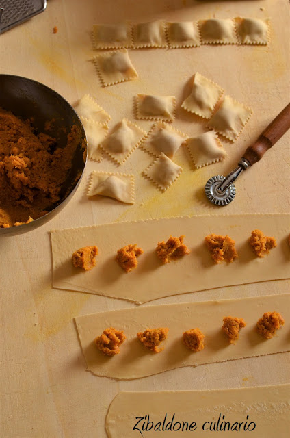 Per l’Emilia- Romagna, nell’ambito della rubrica L’Italia nel piatto, ho pensato di realizzare un classico della cucina regionale, i tortelli di zucca reggiani, che si differenziano da quelli piacentini, preparati con la ricotta e da quelli mantovani, che hanno in più la mostarda, per la presenza degli amaretti sbriciolati; la loro presenza rende questa pasta ripiena piuttosto dolce, che lascia al Parmigiano Reggiano il compito di equilibrarne il gusto.