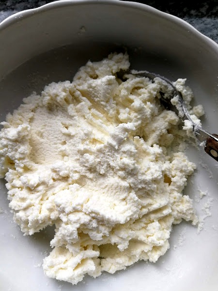 In una scodellina mescolare la ricotta con il pecorino o il parmigiano grattugiato.
