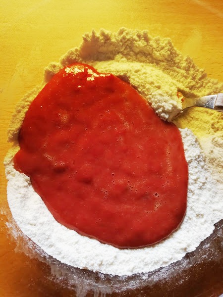 trasferire il tutto sulla spianatoia infarinata lavorare la massa per qualche minuto.