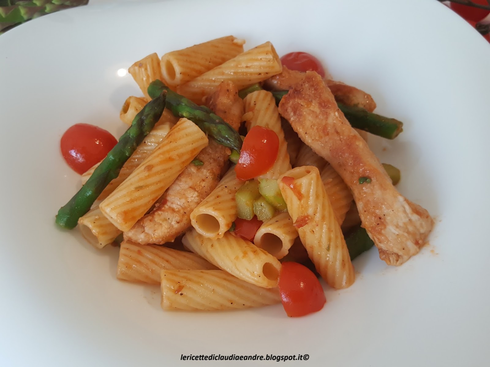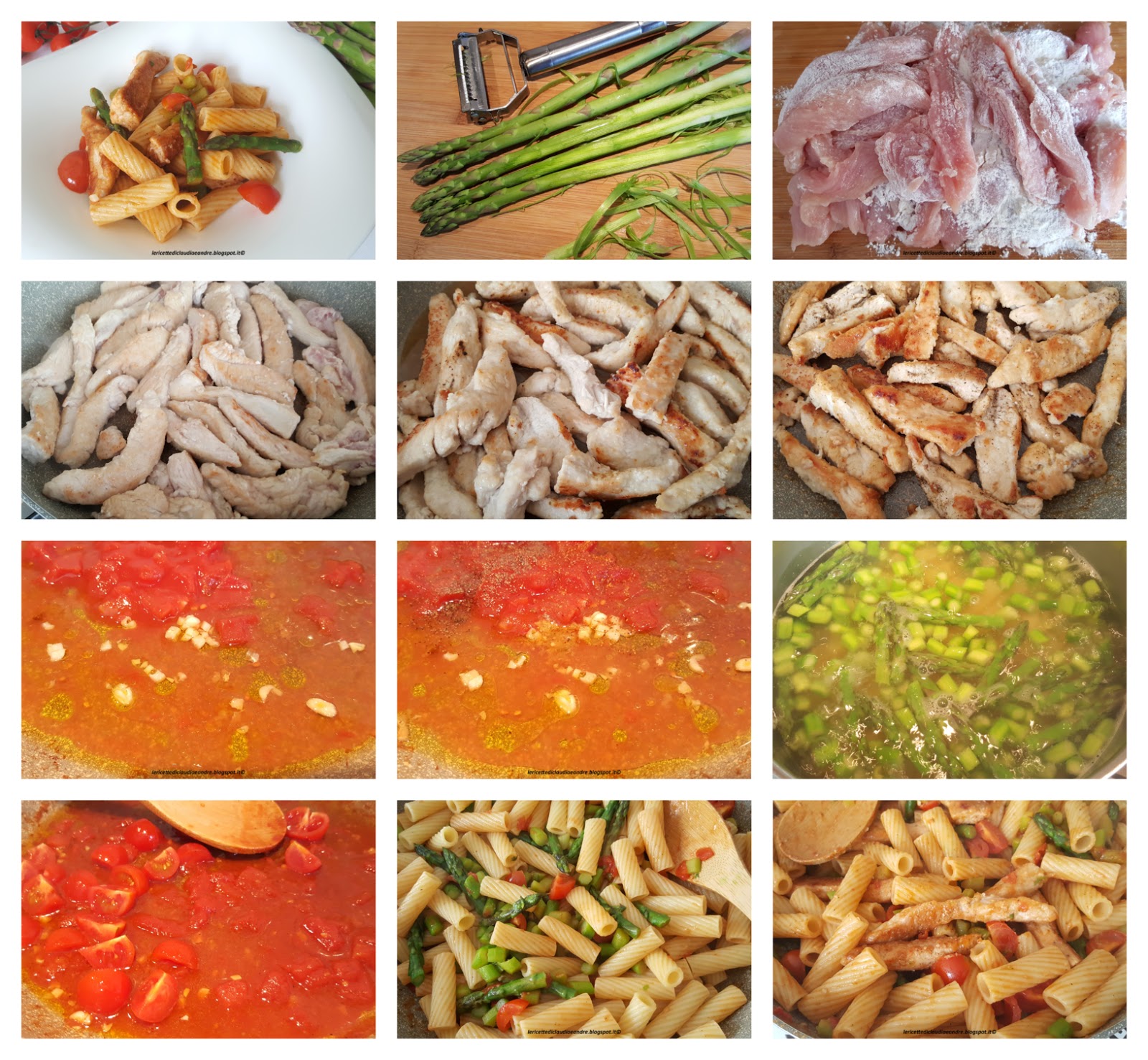 Per preparare questa pasta con asparagi trasformata alla fine in piatto unico, ho usato la fesa di tacchino anche se in quantità più del dovuto, ma alla fine ho aggiunto alla pasta quasi alla metà del tacchino, il resto l’ho usato come secondo da portare al lavoro perché ogni giorno si deve pensare di preparare il pranzo per il giorno dopo per tre, e in questo modo sono riuscita ad alleggerirmi il lavoro. Certo che mangiato subito è tutto un’altra cosa, ma preferiscono mangiare un piatto di pasta riscaldato, che il panino tutti i giorni. Ma passiamo alla ricetta :
