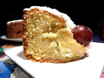 La tortina all’uva è un dolce delizioso reso ancor più morbida dall’aggiunta di qualche pezzetto di pesca ..
