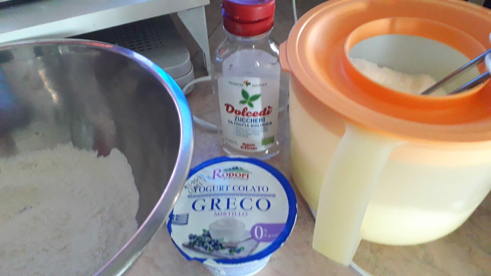 Montare gli albumi con 150g.di Dolcedì,a parte mescolare ,farina,lievito,vanillina e yogurt