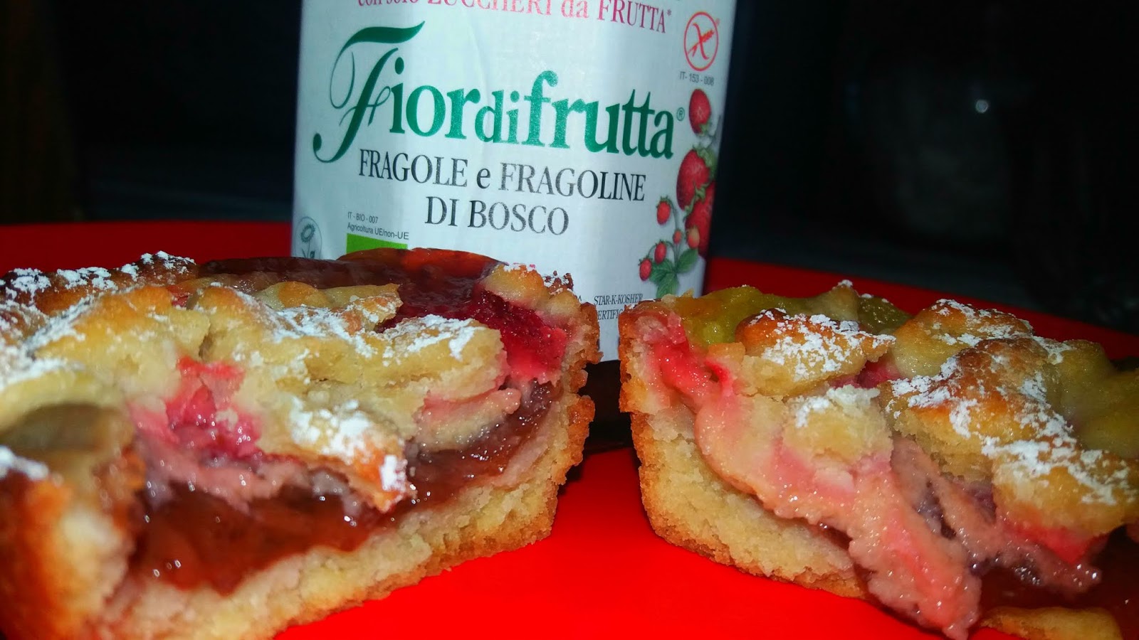 pasticcera e pezzetti di fragola fresca,coprire il tutto con briciole di pasta frolla ed infornare