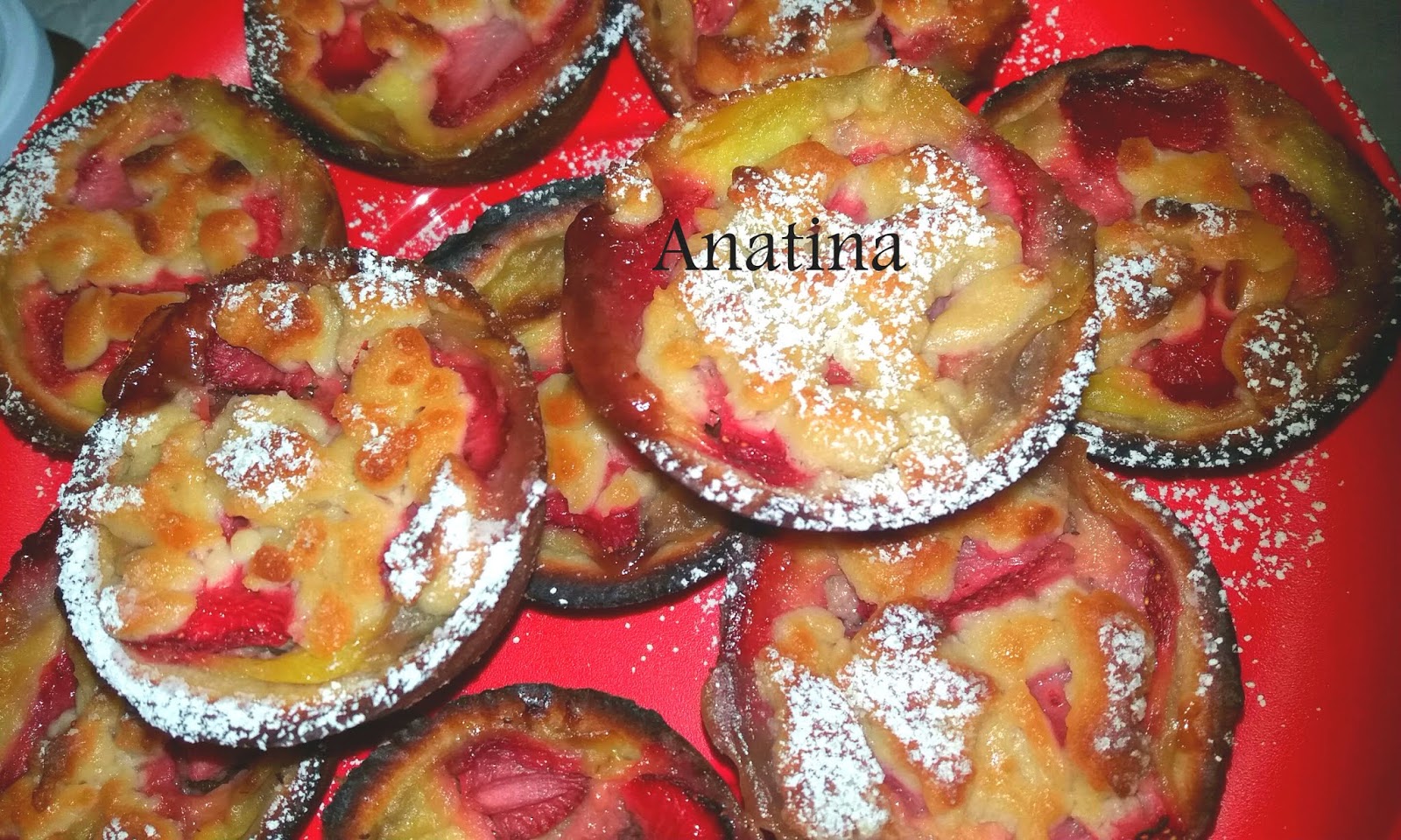 Rivestire stampi x muffin con uno strato di pasta frolla,farcire dapprima con fiordifrutta,poi crema