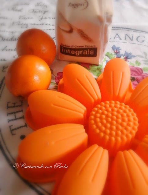 In una ciotola mettete l’arancia frullata, l’acqua, l’olio e lo zucchero. Mescolate bene fino a sciogliere lo zucchero. Miscelate la farina con il lievito e il sale e uniteli al composto dei liquidi.
